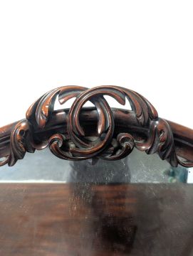 A 19th century mahogany mirror backed sideboard pedestal credenza. The sideboard having a carved, scrolled and floral frame to the mirror back over a three drawer top supported by twin pedestal cupboards. All raised on a plinth base.