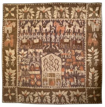 A Kanduri shrine cloth, Uttar Pradesh, India appliqued and embroidered tapestry panel. The panel depicting an army with horses, elephants and carts. The borders with figures and lamas.