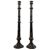 A pair of tall 19th century Chinese black lacquered chinoiserie decorated candlesticks. Each candlestick having tapering bodies with single sconce atop and a circular, terraced base.