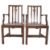 Waring & Gillow Ltd - a set of four early 20th century mahogany carver board room dining chairs. Each chair having a rail back rest with scrolled elbow rests below. Each chair having double removable seats with bottom seat with wicker rattan centre, top seat with leatherette blue centre. All raised on squared straight supports united by peripheral & central stretchers. Labels to underside.