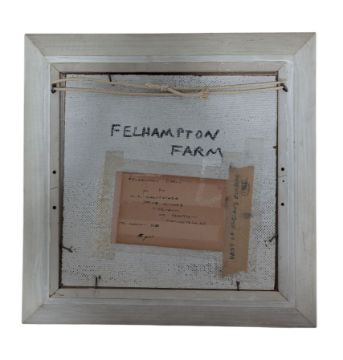 Michael David Barnfather (British, b.1934) - Felhampton Farm - a 20th century 1968 oil on panel landscape painting in warm tones. Signed & dated lower left. Framed. With annotations to back.