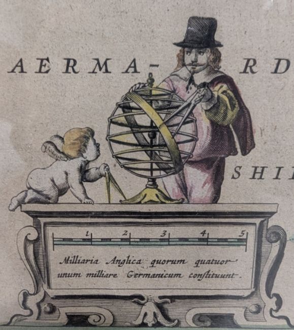 Johannes Blaeu (Dutch, 1596-1673) - Comitatus Brechiniae, Breknoke, engraved hand coloured map, circa 17th century. Framed and glazed.