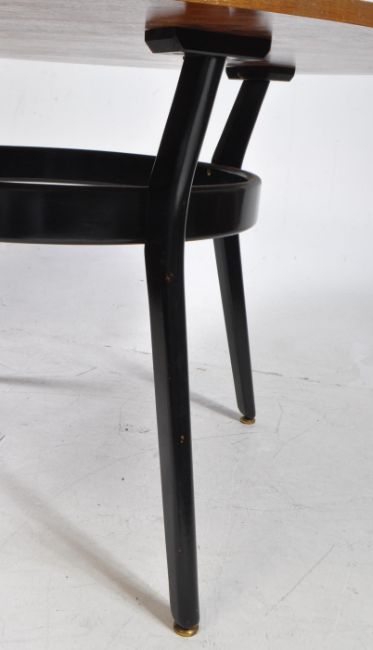 E Gomme / G Plan librenza range tola wood dining table with ebonised legs / frame along with 3 matching butterfly back chairs. Table measures approx: 71x121cm