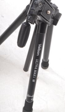 A collection of vintage camera tripods. The collection to include examples such as a Velbon PHD-31Q Ultra Max I M, a Velbon CX Mini, and a Velton VC25B-3, amongst other examples.