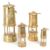 Four 20th century Welsh brass miners lamps, including miniature reproduction examples. Two larger lamps feature Cymru plaques to the main body and handle atop. Largest measuring approx. 22cm x 8.5cm.
