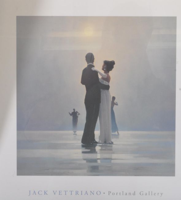 After Jack Vetriano (1951 – 2025) - x3 Jack Vetriano romantic figurative style prints comprising; The Singing Butler, Dance Me To The End of Love and Couple Dancing. Largest measures approx 87x67cm.