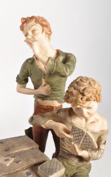 Capodimonte - Vintage 20th century Italian bisque group scene featuring four figures playing a game of cards at a table. Signed Tepizzi. Measures 29cm x 40cm