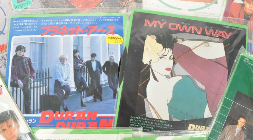 Collection of ten 1980s Duran Duran Japanese import vinyl 45 inch record singles. Examples including Hungry Like The Wolf, Girls On Film, My Own Way, New Moon on Monday, Rio, The Wild Boys, A View to a Kill, and others. Mostly by released Toshiba EMI.
