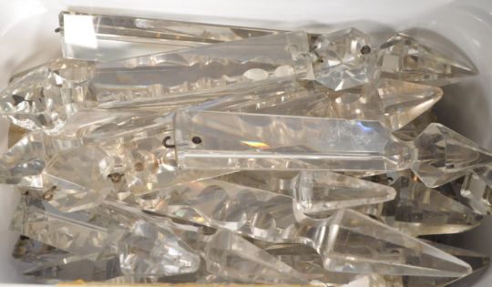 Large collection of 19th and 20th century glass lustre droppers, including examples with facet cut balls, crystal cut shapes, arrow shaped droppers and many more.