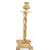 Collection of early 20th century brass household wares. Examples including brass weighing scales on a wooden base, turned and twisted candlesticks, six graduating brass handled pans, a wooden handled brass bell, brass skimmer with an iron handle, a pierced foliate trivet with three splayed legs, and more. Largest piece measuring approx. 33.5cm tall.