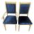 An Italian Versace Design contemporary lacquered top and painted base extending dining table and chairs. The table having a large top in cream with gilt geometric motifs and Greek key borders. Carved decorated frieze, all raised on pedestal support in matching motifs united by a central scrolled stretcher. The set of six chairs in a cream-painted body with gilt details and blue velvet seats and backrests.