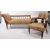 A late Victorian mahogany chaise longue day bed and tub armchair. The chaise raised on turned feet having scrolled backrest with carved panel detail, and spindle gallery to side. The armchair raised on turned legs, with a trio of carved pierced urn form splats to back. Each featuring tapestry upholstery. Measures approx: 74x180x60cm