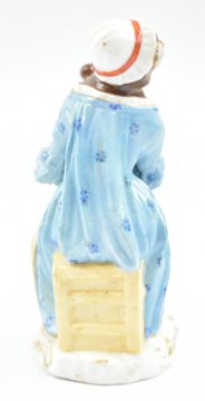 First singer, seated with small book on lap & arms outstretched: nibbles to the edge of her bonnet & similarly to ruffled cuffs. Firing crack to underside of approx. 2cm, visible from the side approx. 0.5cm.