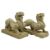 A large pair of carved limestone figures in form of Chinese mythical beast Pixiu. Each pixiu carved as a crouching winged mythical beast, with large eyes, upturned snout, pricked ears, and a short mane extending to the rectangular socket in the back, painted in red and blue or black with feather marking, stands on four large four-clawed feet.