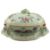 A Qing Qianlong period famille rose porcelain tureen with cover and platter. The oval-shaped twin animal head-handled tureen decorated with polychrome and gilt, with famille rose enamels depicting sprigs of flowers and a pomegranate finial.
