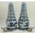A pair of Chinese blue and white porcelain pagoda vases. Each vase potted in form of a six tier pagoda supported by a bulbous vase base. Decorated with foliate rim to every tier, two five-clawed dragons on an incised sea wave pattern ground. Lappets to the base. Ming 'Xuande' marked to body.