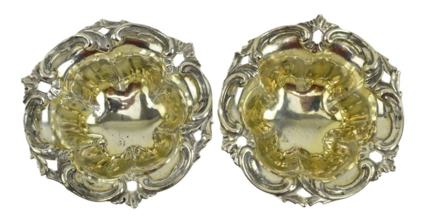 A pair of Victorian hallmarked silver bon bon dishes / bowls. Each pierced dish being decorated with a vignette design. Hallmarked year 1839, London. Sponsors mark for Edward, EdwardJr, John & William Barnard . Total weight approx. 266.3g.