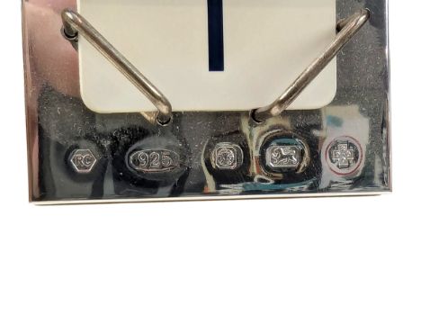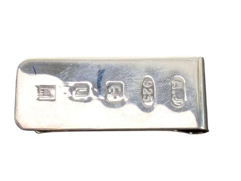 A hallmarked silver perpetual calendar. Hallmarked year 2000, Sheffield. Sponsors mark for Roberts Carrs. Together with a hallmarked silver money clip. Hallmarked year 2019, Birmingham. Sponsors mark for Royal Mint. Both completed in presentation boxes. Weight approx.84.9g.