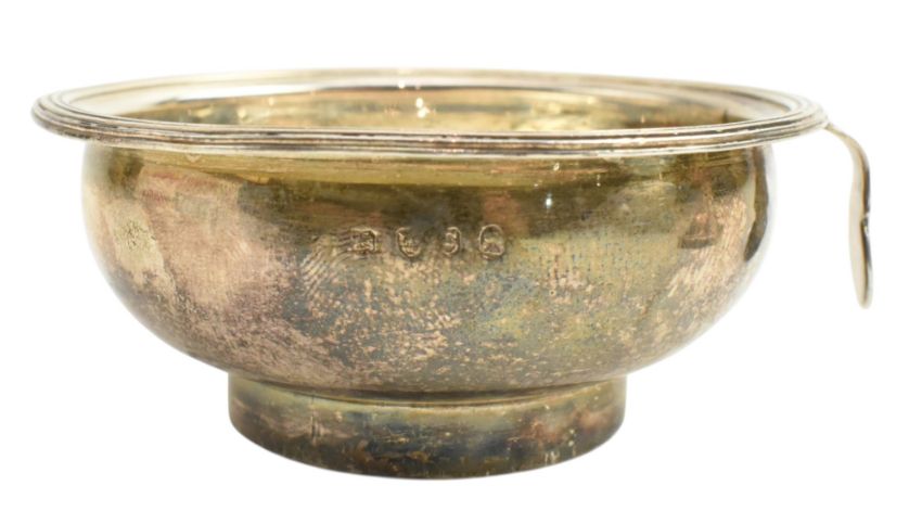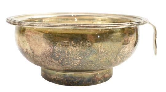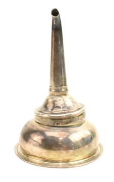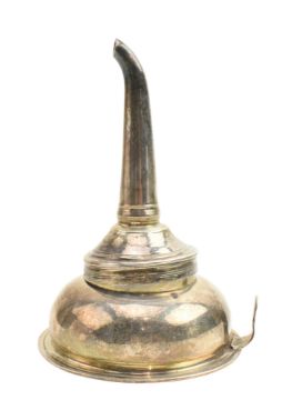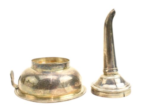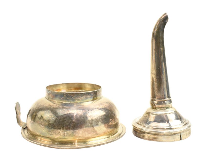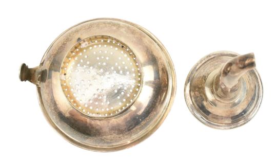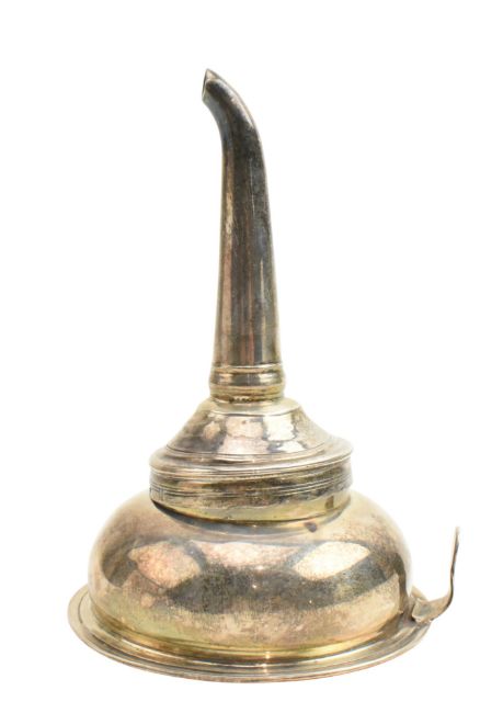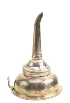 A George III hallmarked silver strainer wine funnel. Hallmarked year 1813, London. Sponsors mark rubbed. Total weight approx. 68.1g.
