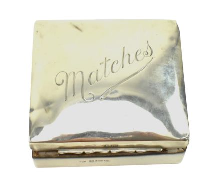 A collection of three hallmarked silver pieces. The lot to include an Edward VII hallmarked silver wood lined match box /striker. Hallmarked year 1904, Birmingham, sponsors mark for Charles S Green & Co Ltd. Together with a George V hallmarked silver & wood lined cigarette box, hallmarked year 1913. Sponsors mark for Goldsmiths & Silversmiths Co Ltd. Further together with a Christening cup being Stampled LUNT Sterling. Total gross weight approx. 933.8g.