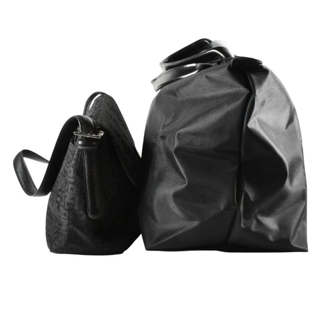 Longchamp shoulder bag with black monogrammed fabric exterior,