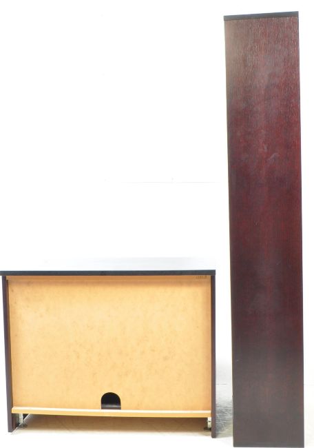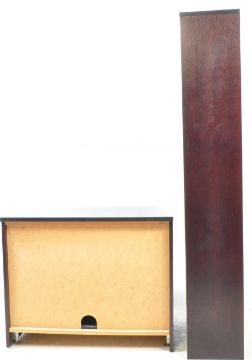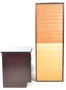 Beaver & Tapley, Tapley 33 - Late 20th century burgundy oak modular units including base units with twin cupboard doors, bookcase / display tops varying sizes. Largest bookcase measures approx: 158x56x26cm