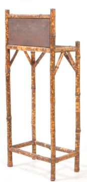 19th century Victorian Aesthetic movement hall bamboo stick / umbrella stand. The stand having a bamboo frame set to a woven panel raised to back. Twin section on upright feet with perimeter stretchers. Measures approx:94x39x24cm
