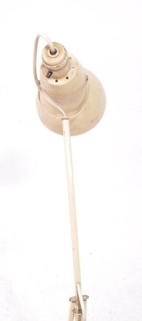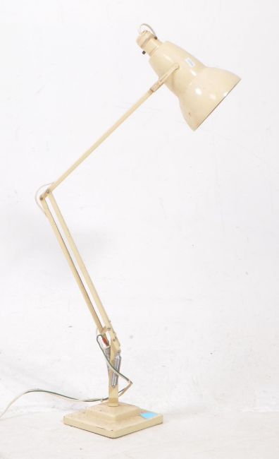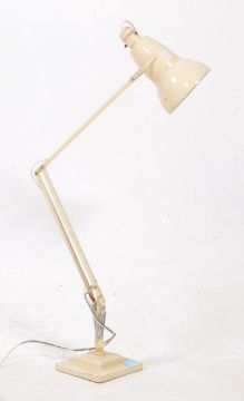 Herbert Terry Lamp - Model 1227 - A retro mid century white anglepoise industrial factory table lamp. Conical shade on spring loaded arms, all raised on a tiered foot. Measures approx: 97cm tall fully extended.