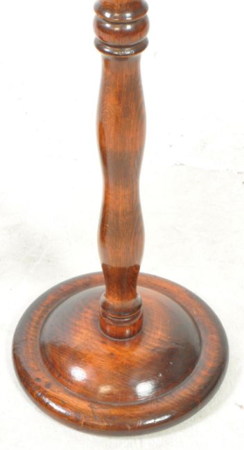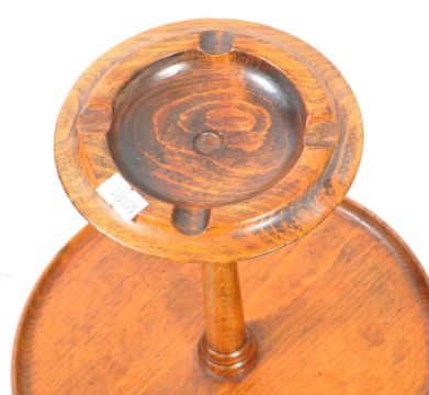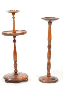 Two early 20th century turned mahogany floor standing ashtrays. Both with three circular tiers, including the ashtray atop. Measures approx:69x25cm