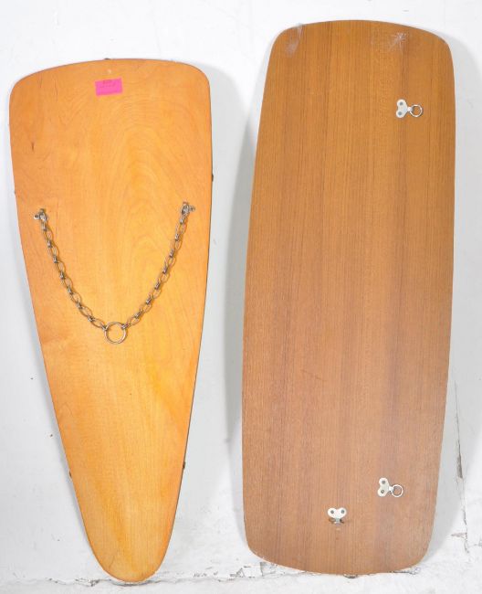 Two vintage mid 20th century atomic teak wall mirrors. Each of irregular form, one having teak show frame the other having teak backing.