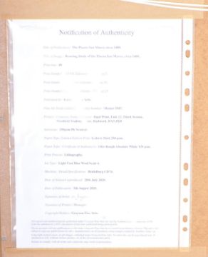 ARTISTS RE-SALE RIGHT. Buyers of the re-sold art of living artists will be charged the royalty where applicable. Currently this is 4% on any item sold at 1000 Euros or over, diminishing from 50,000 Euros. VAT is not applicable on this charge. Further details can be obtained from artistscollectingsociety.org.