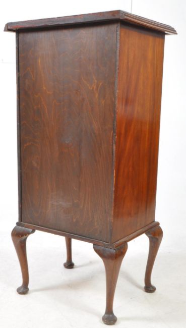 Early 20th century mahogany Queen Anne revival pedestal sheet music chest of drawers. Raised on cabriole legs with pad feet having an upright bank of drawers having fall fronts. Measures approx: 111x53x43cm