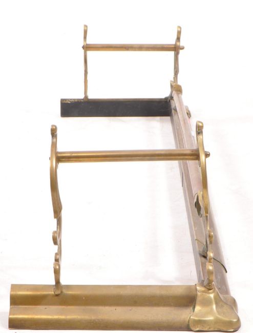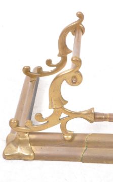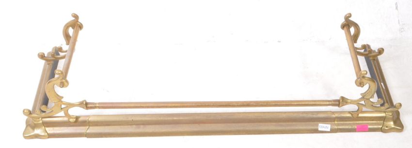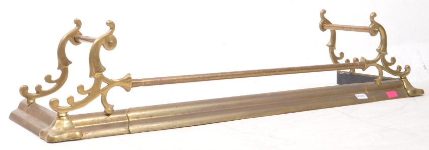 A 19th century Victorian brass extending fire fender kerb. The fender in the Art Nouveau style with scrolled raised bars and plinth bar kerb surround. Measures approx: 28x121x36cm