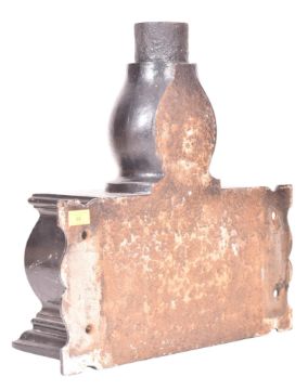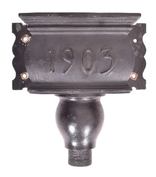 An early 20th century 1903 Monmouth Hospital cast iron rainwater hopper. The planter having a canted flared top with 1903 moulded in relief to front. Gourd-shaped finial below.