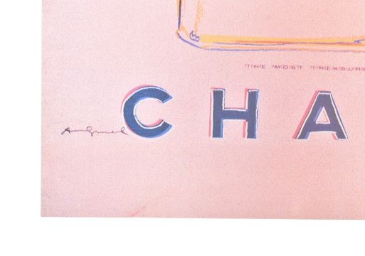 Andy Warhol (American, 1928-1987) - a vintage 1997 Chanel No. 5 pop art lithograph poster. The poster featuring Chanel No. 5 perfume bottle on pink & red ground. Paper backed linen. Unframed.