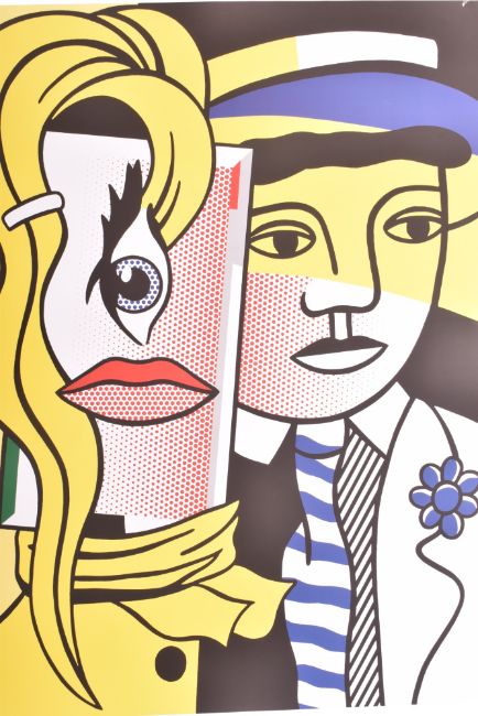 After Roy Lichtenstein (1923-1997) - Stepping Out - a vintage lithograph pop art poster print. Unframed. Some slight pin hole damage.