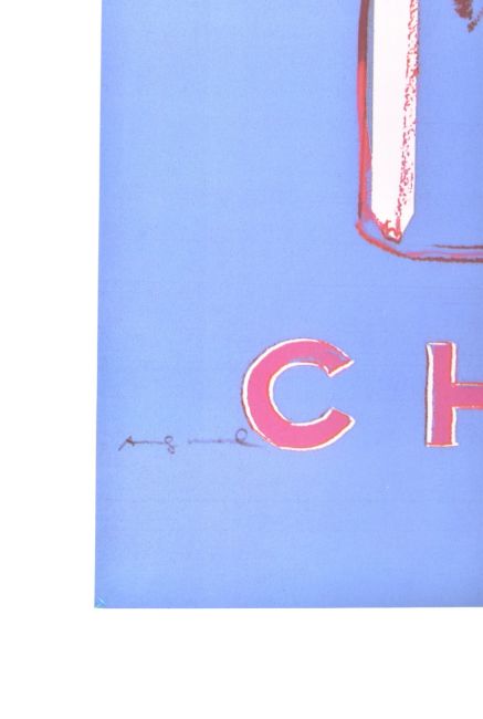 Andy Warhol (American, 1928-1987) - a vintage 1997 Chanel No. 5 pop art lithograph poster. The poster featuring Chanel No. 5 perfume bottle on blue and yellow ground. Unframed.