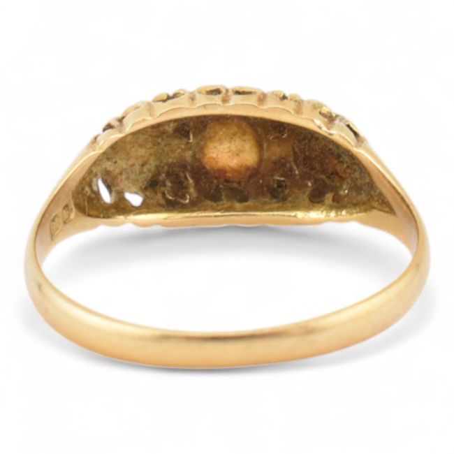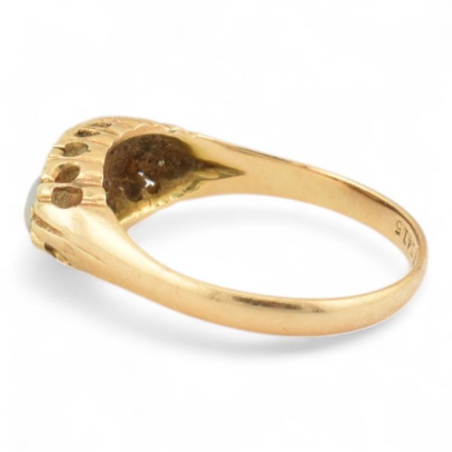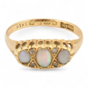 An Edwardian hallmarked 18ct gold and three stone opal ring. Hallmarked Chester 1910, sponsors mark D&Co. Weight 2.7g, size Q