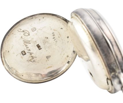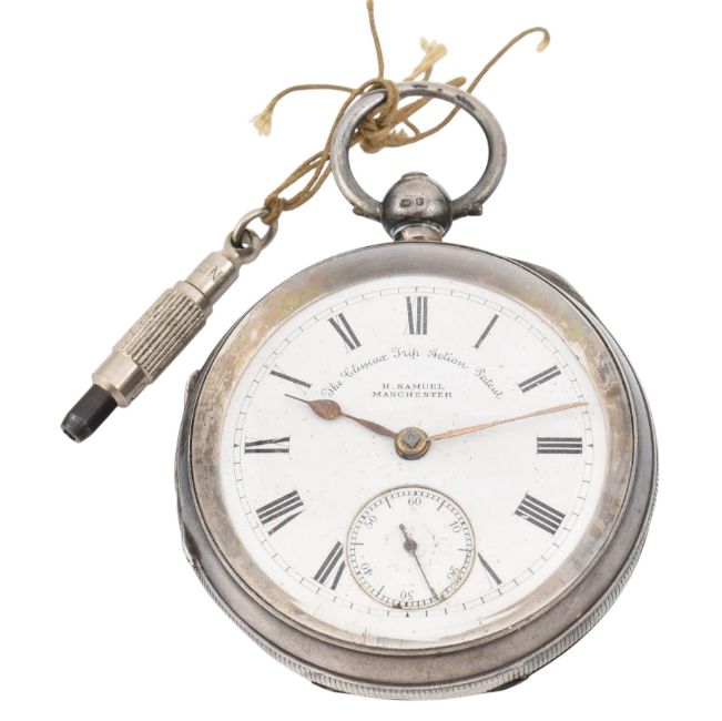 A Victorian hallmarked silver H Samuel Manchester pocket watch Climax Trip Action Patent . Hallmarked Chester 1898. Total weight 128g.