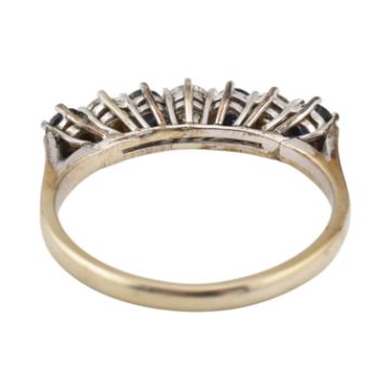 A hallmarked 18ct gold sapphire and diamond seven stone ring. Import hallmark for London. Estimated total diamond weight 0.40ct. Weight 2.8g. Size M.