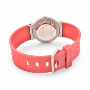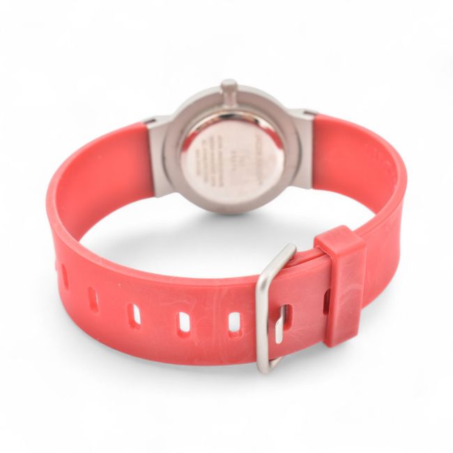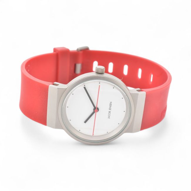 JACOB JENSEN - A contemporary stainless steel Ascent quartz wristwatch, ref. 761 50374. White dial with baton hands and dot markers. Caseback with serial No 761 50374 being set to a red plastic strap.