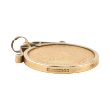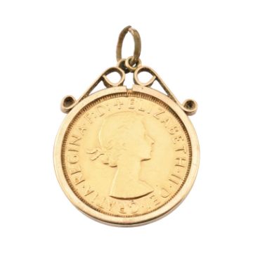 A hallmarked 9ct gold mounted 1958 full gold sovereign pendant necklace. Total weight 9.9g.