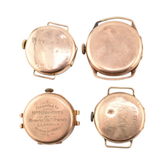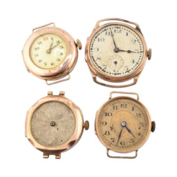 An assortment of hallmarked 9ct gold-cased watches, all AF. The watches to include the Tavannes Watch company. Total weight 56g.