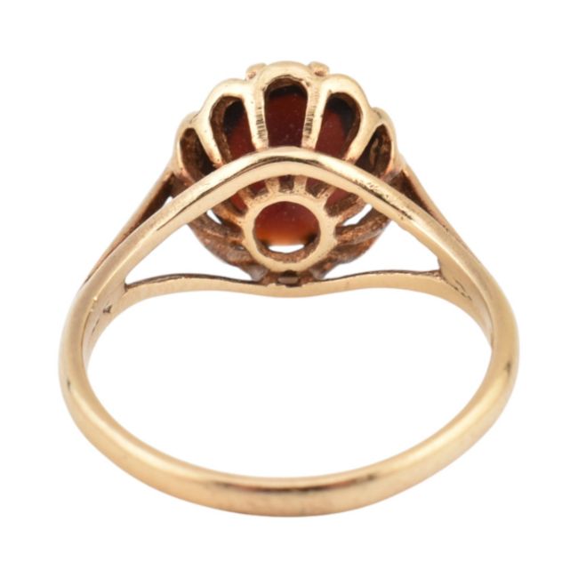 1970s hallmarked 9ct gold an garnet ring. Weight 2.2g. Size L.5.