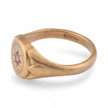 A hallmarked 9ct gold gentleman's signet ring with ruby in star setting. Hallmarked Birmingham. Weight 8.8g, Size W