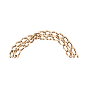 15ct gold watch chain bracelet. The watch chain having been converted to a bracelet with a dog lead clasp fastener. Clasp marked 15ct, chain links have worn marks, likely for Chester. One link having been added to join the chains appears to be metal, also the link attaching the dog lead clasp appears to be metal. Total weight 20.4g. Measures 20cm.