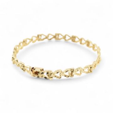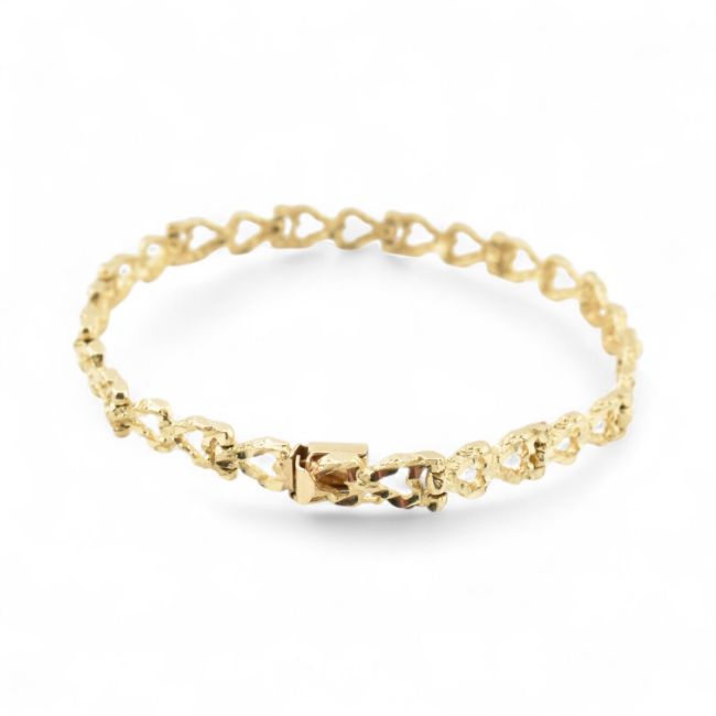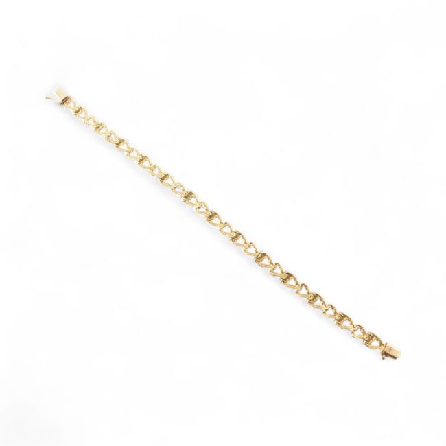 A 1970s textured gold chain link bracelet. Stamped 14K tests indicate 14ct gold. Weight 9.1g. Measures 18cm.