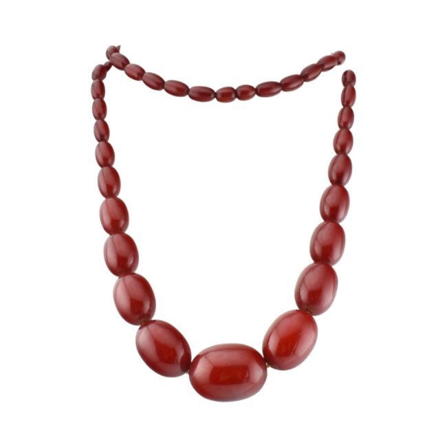 Vintage cherry amber Bakelite bead necklace. The necklace strung with beads 1cm - 3cm. Total length 82cm. Total weight 78g.