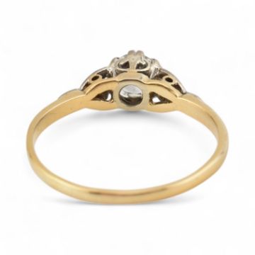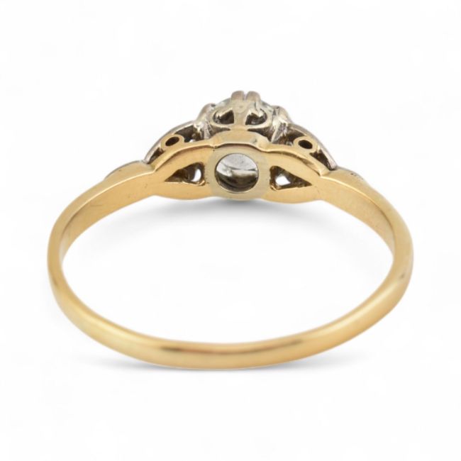 An 18ct gold and platinum diamond solitaire ring. Unmarked, tests indicate 18ct gold. Estimated diamond weight 0.50cts. Weight 1.9g, size O