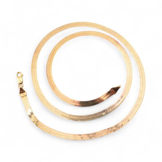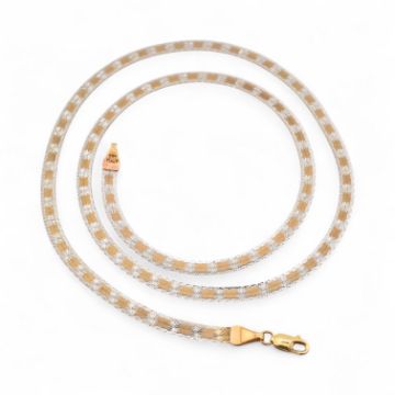 A hallmarked 9ct gold flat link snake chain necklace. The necklace with white and yellow gold star decoration to lobster claw clasp. Weight 4.9g. Measurement 46cm.